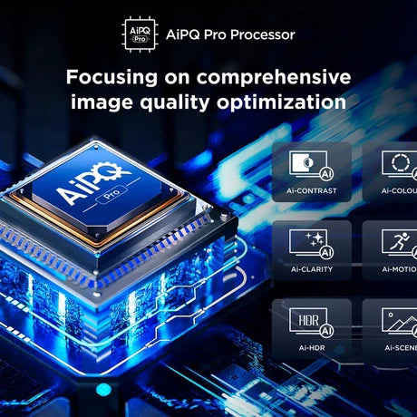 TCL’s powerful AiPQ Pro Processor enhances every frame in real-time, optimising contrast, sharpness, color accuracy, and motion — bringing you a stunning 4K visual experience.